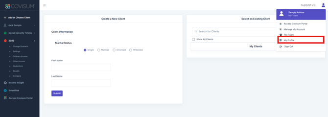 Click on 'My Profile'